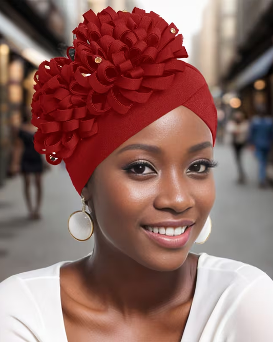 African-Style Side-Mounted Oversized Flower Turban Hat For Women