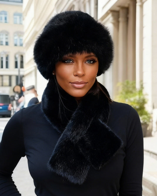2-Piece Faux Fox Fur Warm Fisherman Hat & Scarf Set