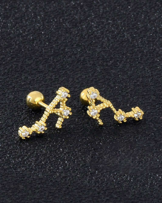 12 Constellations Gold Diamond Stud Earrings