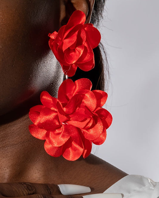 A Pair of Fashionable Polyester Large Flower Three-dimensional Artificial Flower Drop Earrings, Suitable for Women's Prom, Party, and as a Gift for Friends