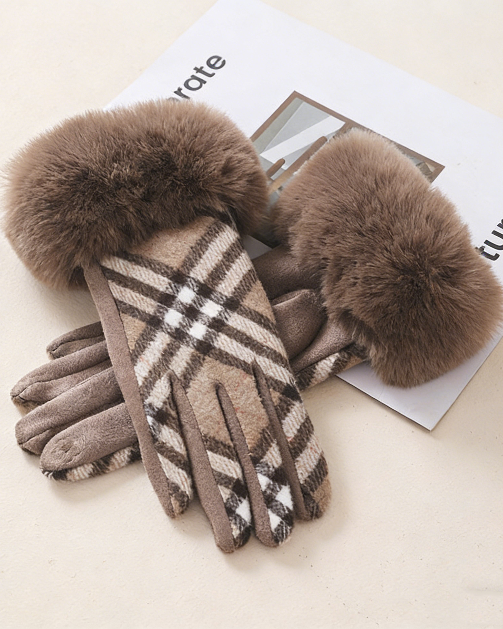 - Style: Contrast Color Plaid Velvet Gloves Winter Riding Warm Fleece-lined Touch Screen Finger Woolen Gloves For Women